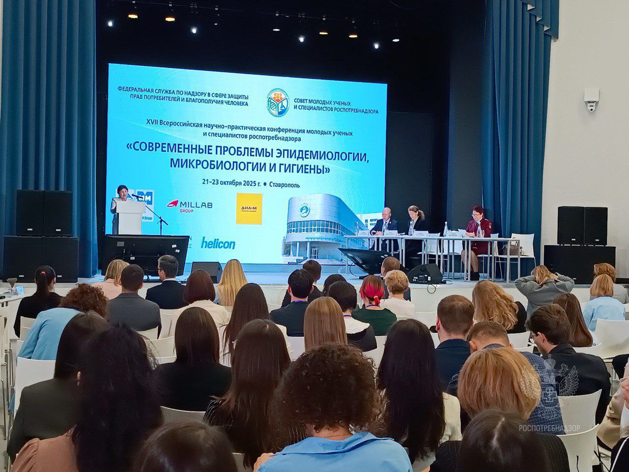 С 21 по 23 октября прошла XVII Всероссийская научнопрактическая конференция молодых учёных и специалистов Роспотребнадзора «Современные проблемы эпидемиологии, микробиологии и гигиены». Мероприятие состоялось на базе Ставропольского противочумного института Роспотребнадзора. На церемонии открытия зачитали приветственное слово руководителя Роспотребнадзора Анны Поповой, в котором был отмечен вклад молодых специалистов в дело сохранения и укрепления здоровья, увеличения продолжительности, повышения качества жизни россиян.