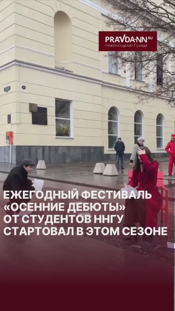 Это начались «Осенние дебюты» в ННГУ — студенты вышли на улицу показать свои таланты. Они поют, танцуют, играют. Фестиваль будет продолжаться до 8 ноября. Хотите тоже посмотреть?