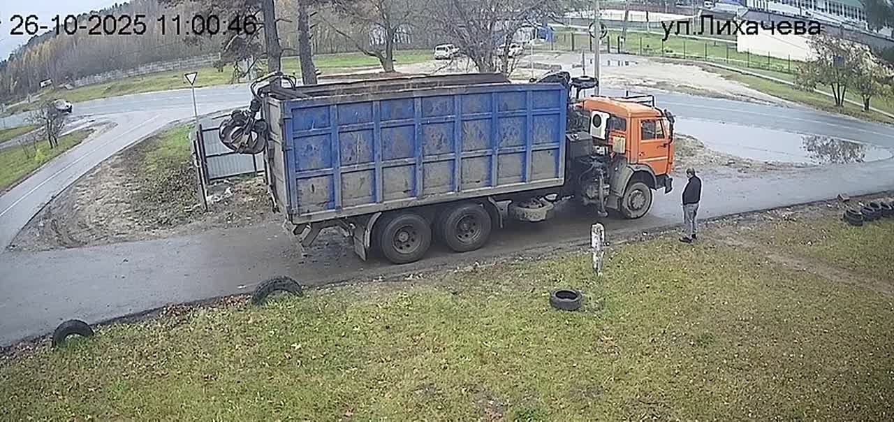 Подъехали к контейнерной площадке и быстренько выгрузили свой мусор. Только вот не учли наличие видеокамеры.