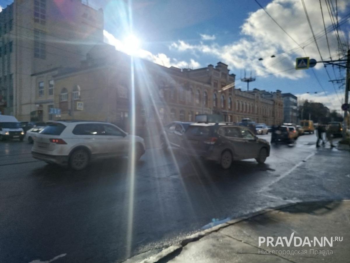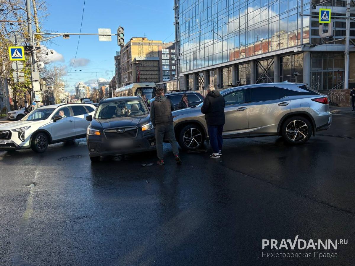 На улице Белинского рядом с «Этажами» авария — там столкнулись две машины.
