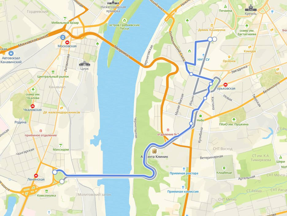 Он курсирует от улицы Нижегородской до Комсомольской площади.