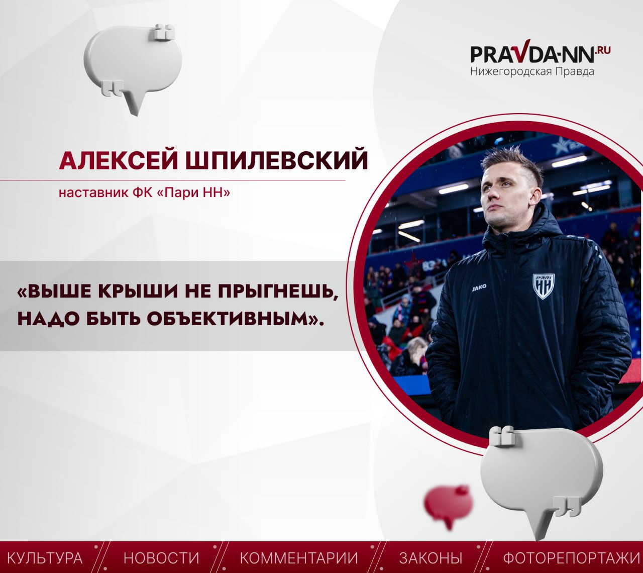 Главный тренер ФК «Пари НН» Алексей Шпилевский прокомментировал вчерашнее поражение волжан в матче с ЦСКА — наши проиграли со счётом 0:2.
