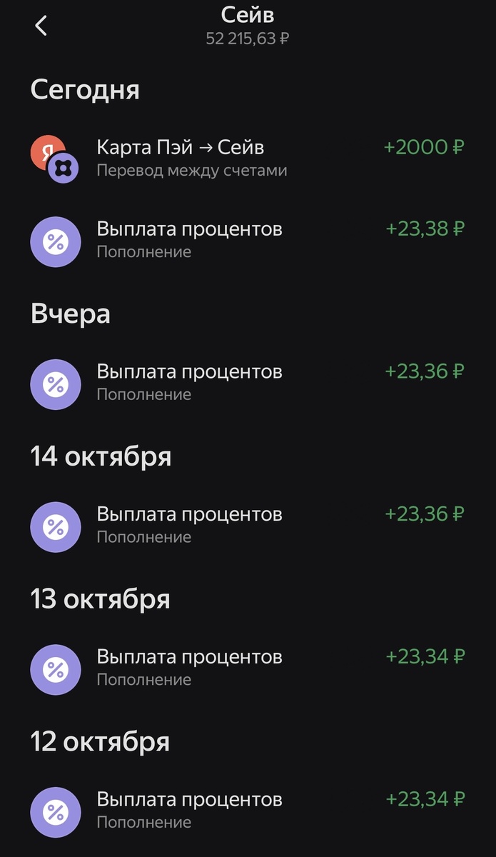 Эта ставка привлекает особое внимание, так как «Сейв» предлагает ежедневную капитализацию с моментальной выплатой процентов. В отличие от других банков, таких как МТС, где выплаты происходят месячными периодами, клиенты Яндекс Банка могут наслаждаться регулярными начислениями, как пример, на 16 октября сумма на счете составила 52 215,63 рублей.