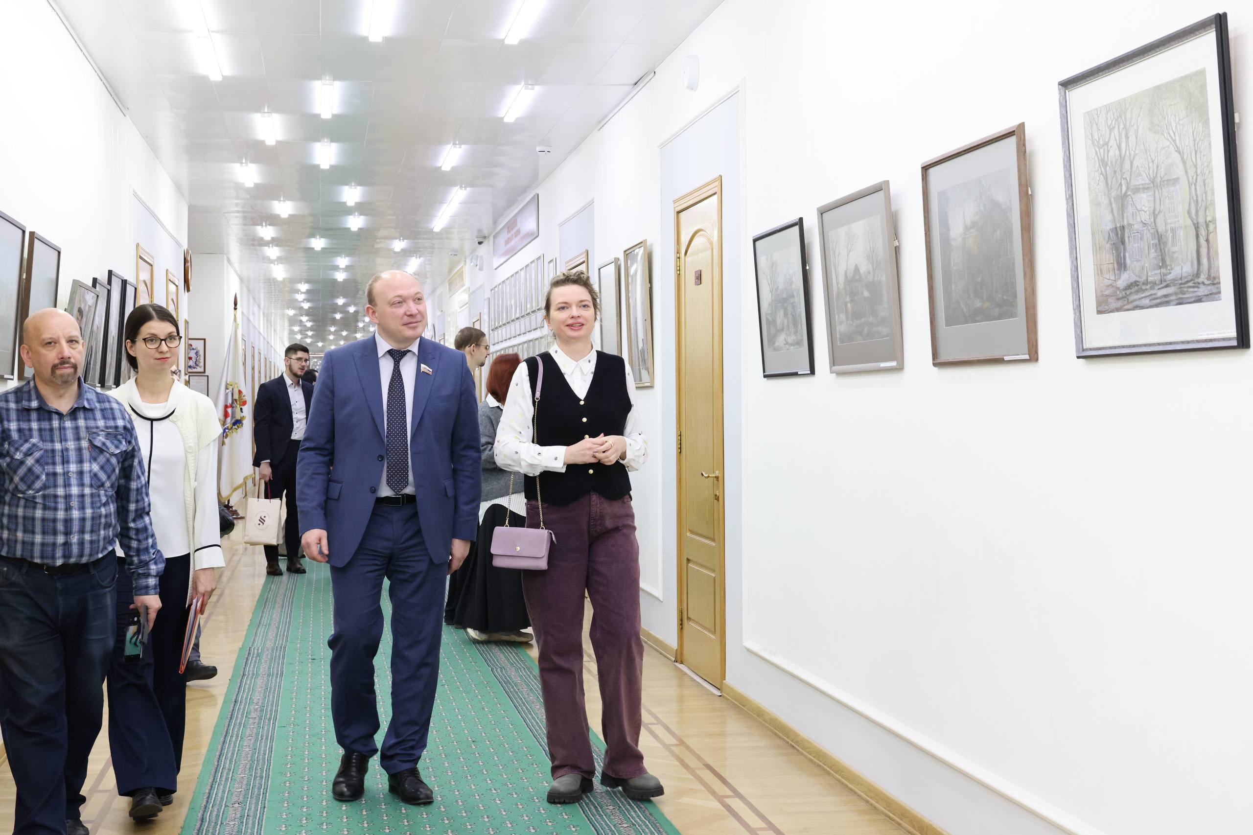 Депутат, руководитель аппарата Законодательного Собрания Максим Ребров встретился с авторами уникальной выставки, которая на протяжении декады ноября создавала особую атмосферу в стенах нашего парламента.