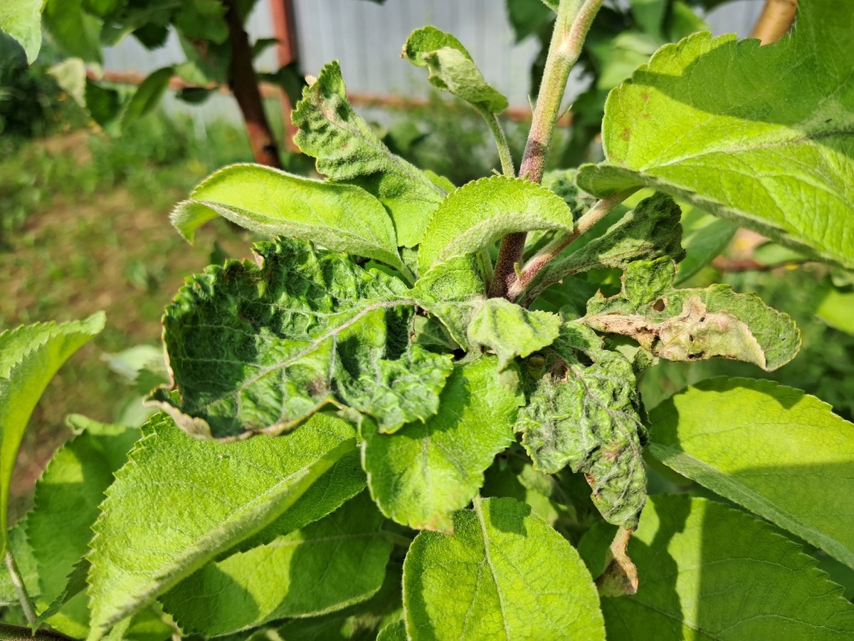Если при осмотре яблони замечены скрученные листья, важно предпринять следующие шаги: