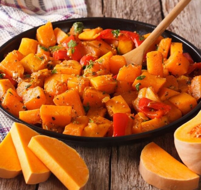 Жареная тыква обладает сладким вкусом и румяной корочкой. При этом она не теряет своей мясистости и аромата, как это происходит при варке. В сочетании с разнообразными пряностями, луком и чесноком тыква раскрывает новый, более глубокий вкус, который точно удивит вашу семью и друзей.