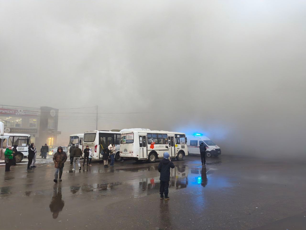 Возгорание случилось в здании рядом с автостанцией. Предположительно, горит магазин.