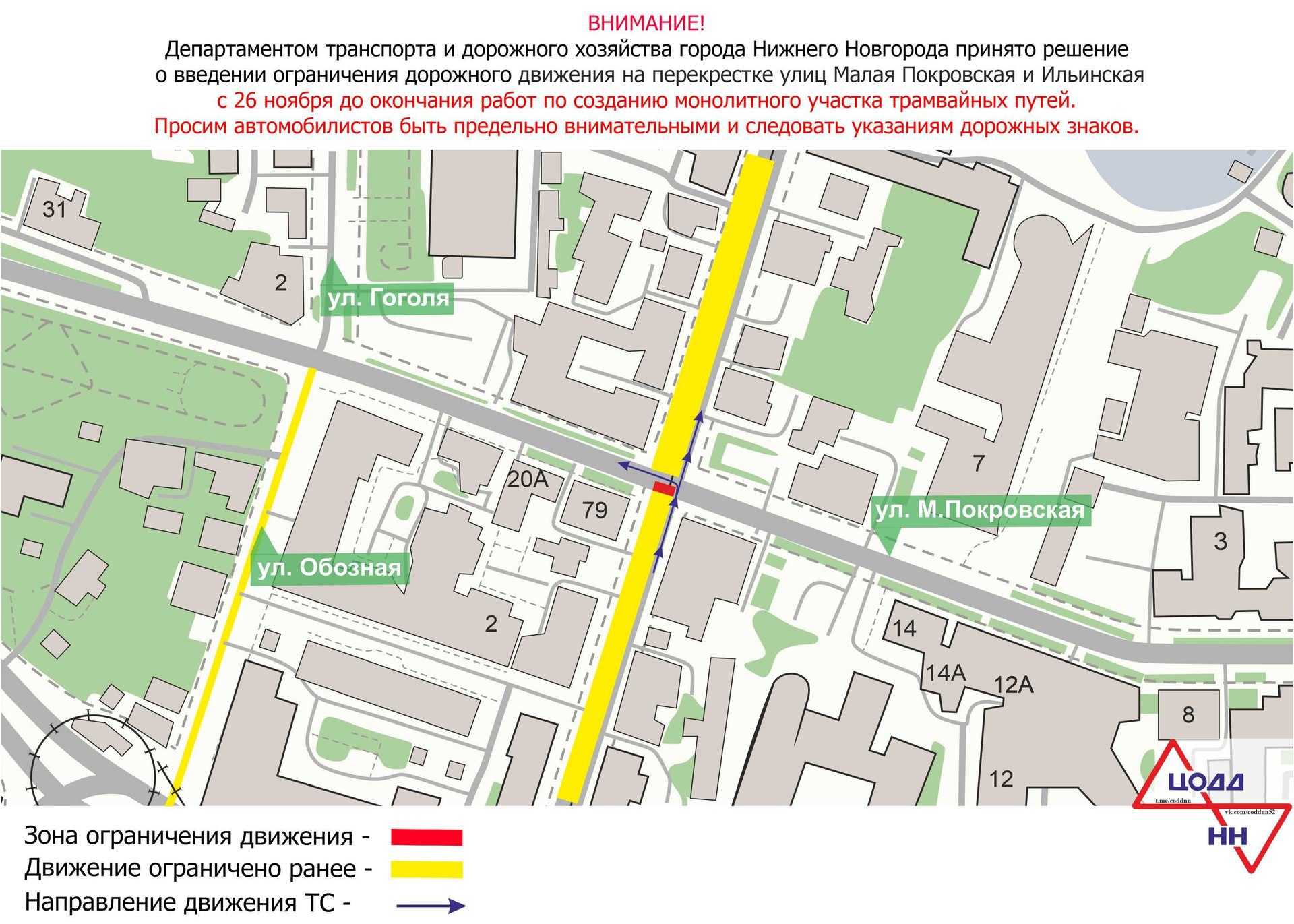 Левый поворот с улицы Ильинской на улицу Малую Покровскую сохранится, но будет временно заужен.