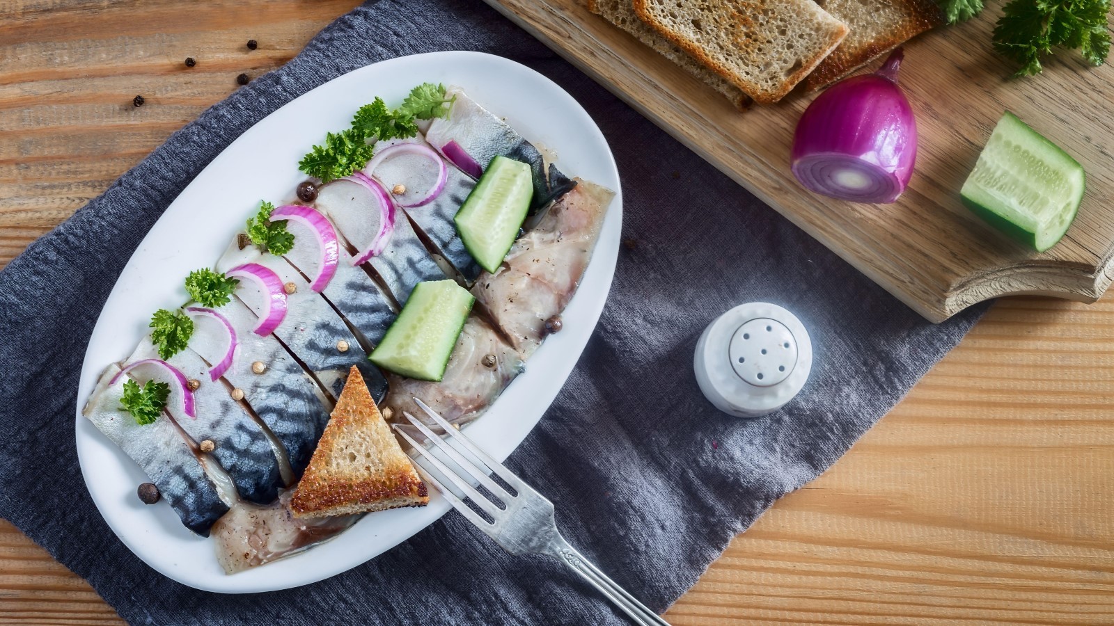 Накройте емкость крышкой или пищевой пленкой и поставьте в холодильник на ночь. Через 10 часов скумбрия будет полностью готова к подаче на стол. Надо только очистить ее излишка специй, заправить растительным маслом и посыпать тонкими кольцами лука, уверяет автор YouTube-канала «Готовить просто с Нелей Королевой».