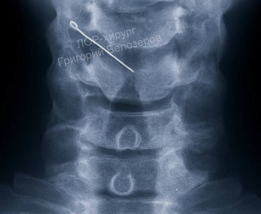 По словам ЛОР-хирурга Георгия Белозерова, сначала она попала в мягкие ткани, а после дошла до крупных мышц. Благо, ее удалось вытащить.