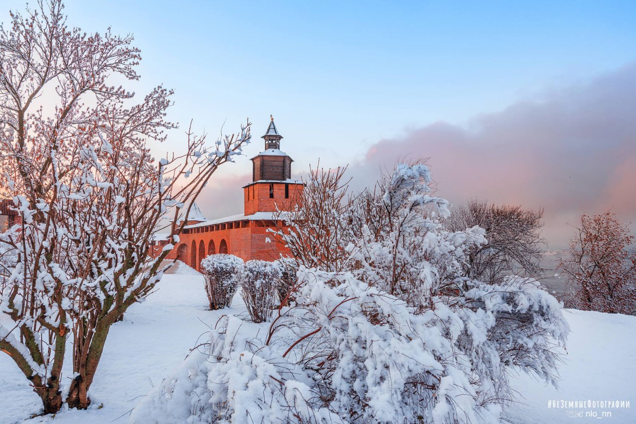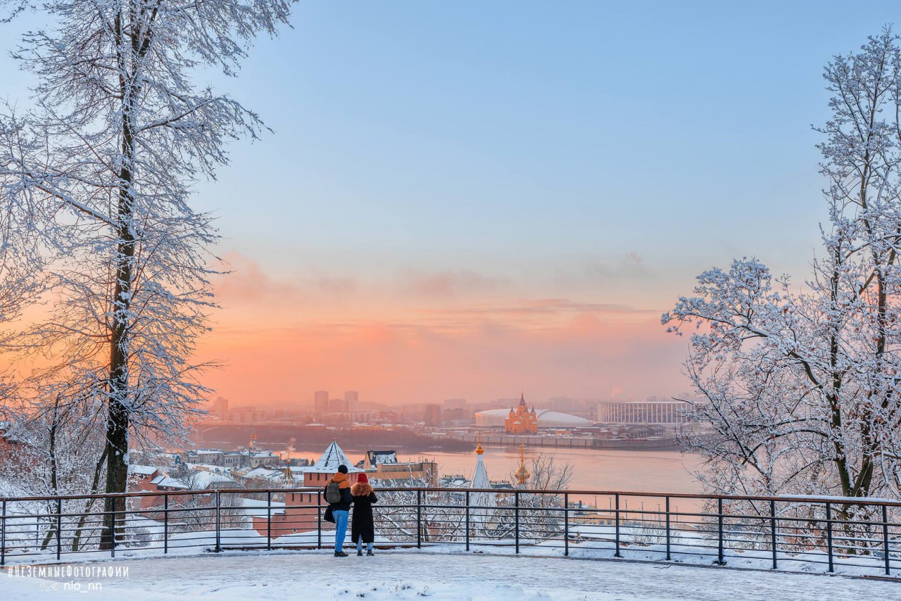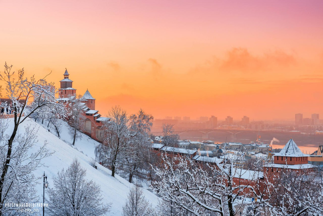 Фотографии нежного заката в зимнем Нижнем Новгороде