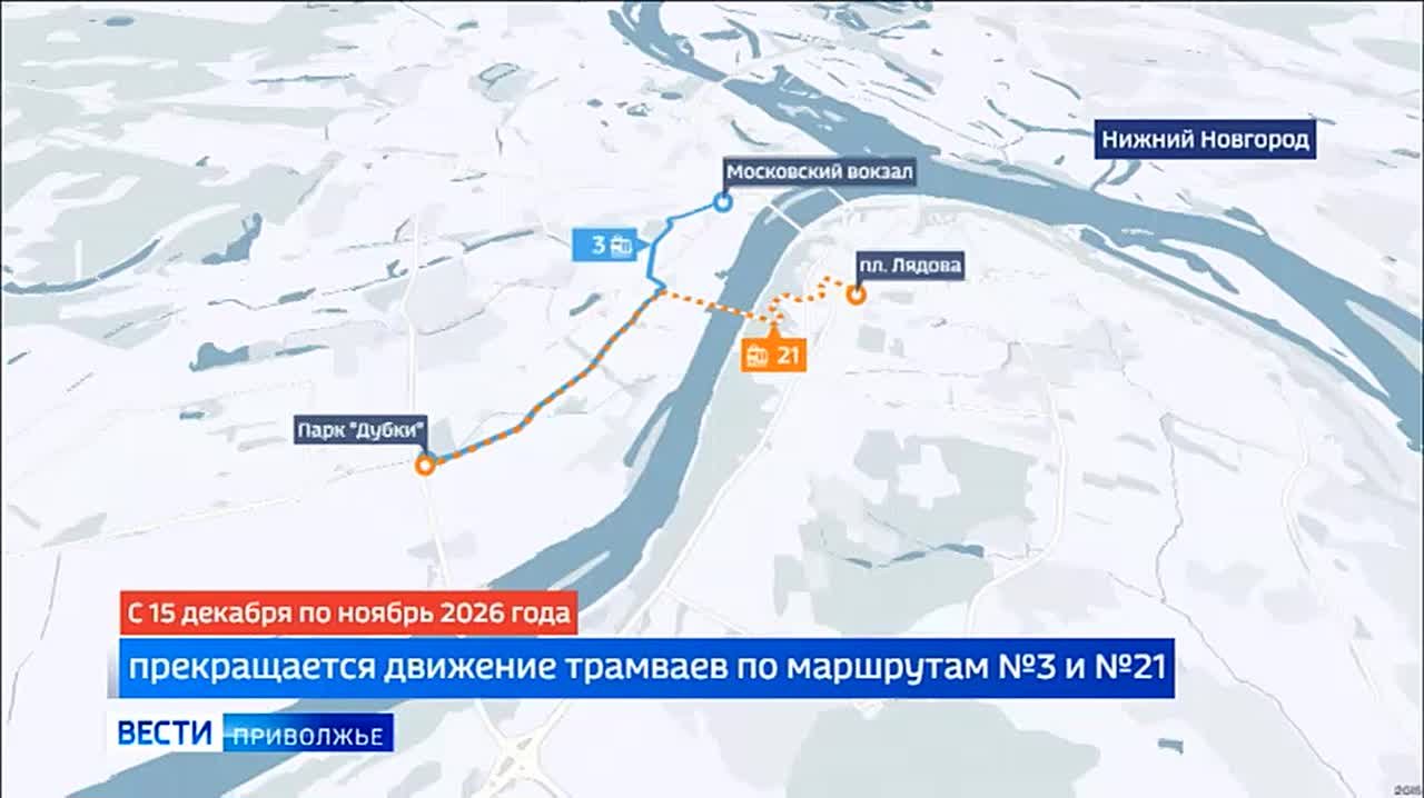 На год закрывают маршруты двух трамваев в Ленинском районе Нижнего Новгорода - номер 3 и 21
