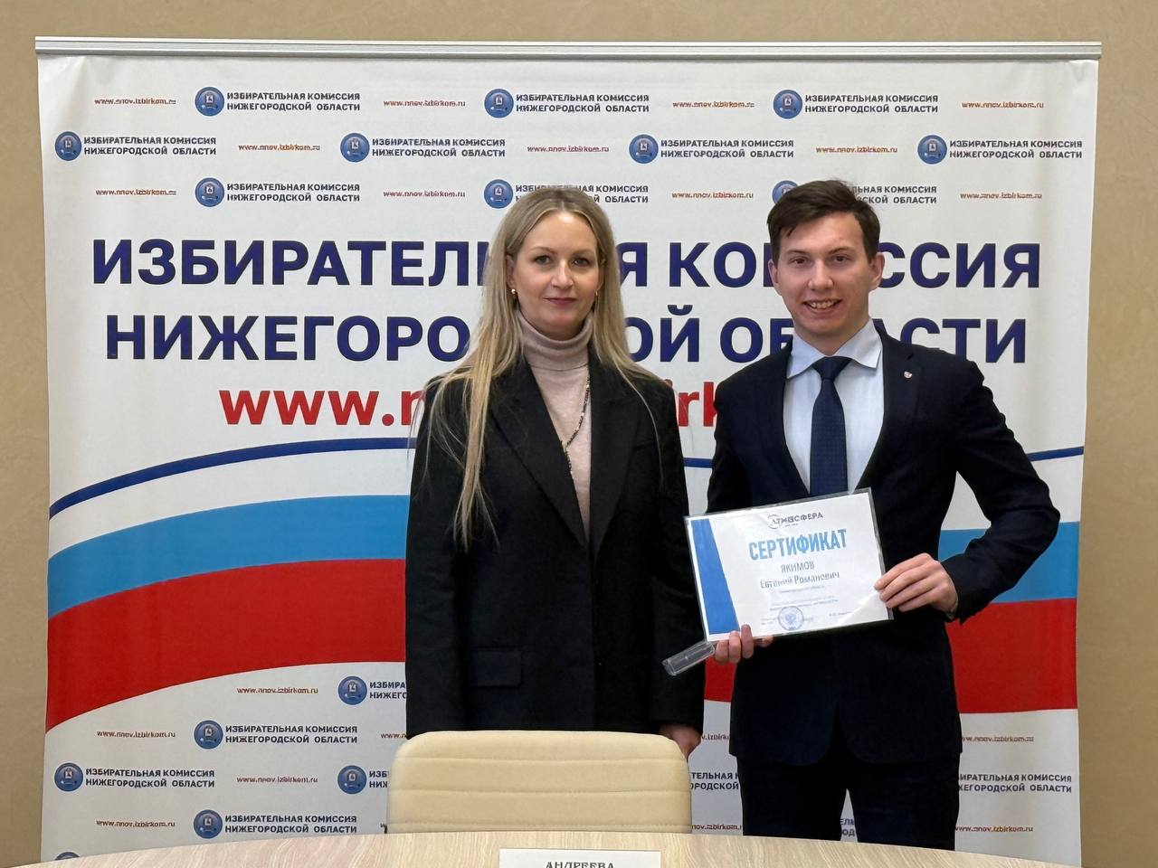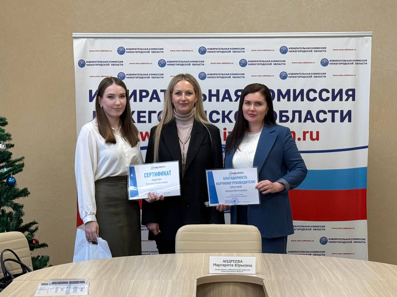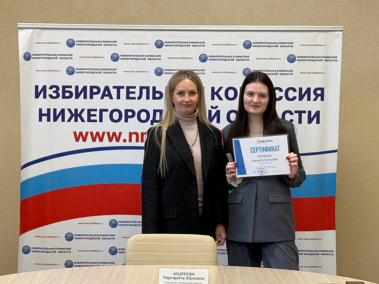 Сегодня в зале заседаний избирательной комиссии Нижегородской области состоялась встреча участников регионального этапа Всероссийского конкурса «Атмосфера» с председателем избирательной комиссии Нижегородской области – Маргаритой Андреевой. Поводом для встречи стало обсуждение итогов регионального этапа, а также награждение участников Конкурса!