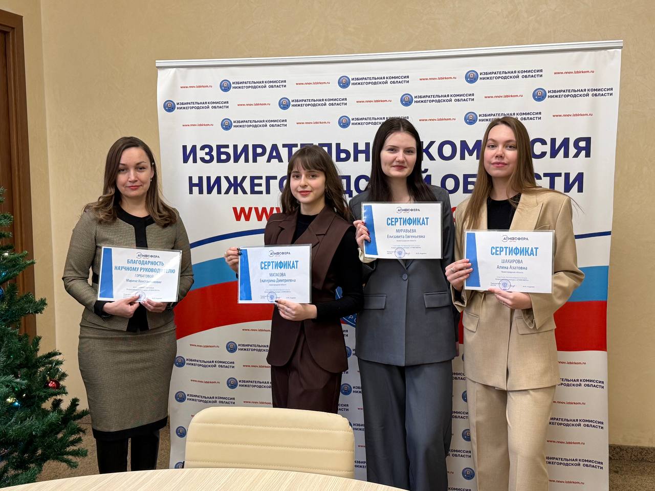 Участники регионального этапа Всероссийского конкурса «Атмосфера» были награждены именными сертификатами, победители были отмечены также памятными сувенирами от избирательной комиссии Нижегородской области! В адрес научных руководителей участников также звучали слова благодарности!