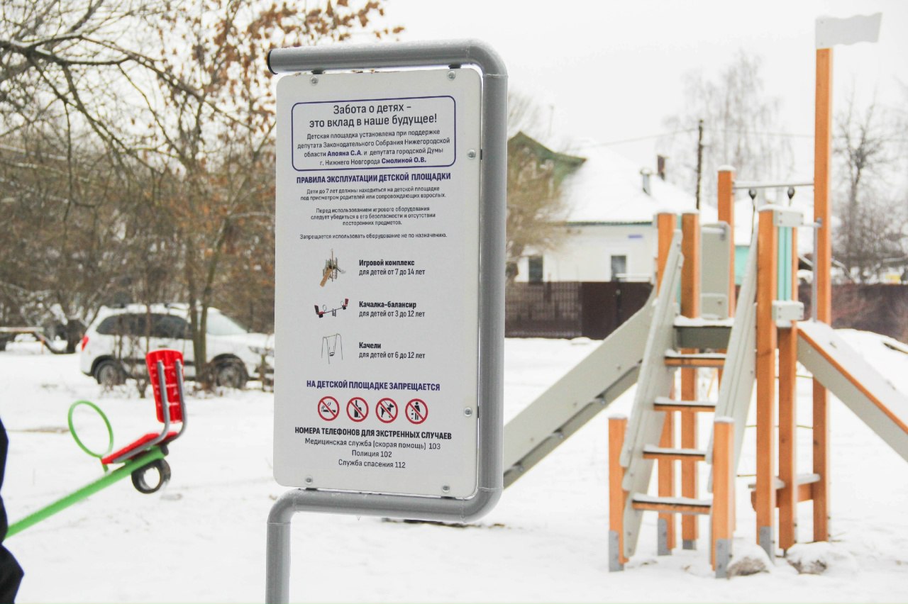 Депутат городской Думы Нижнего Новгорода Оксана Смолина совместно с депутатом ЗакСобрания Нижегородской области Соломоном Апояном оказали содействие в выделении финансирования на установку игровых элементов на детской площадке на улице Снежной.