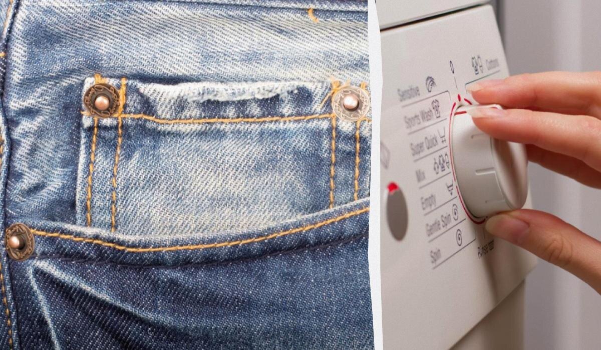 - Проверьте карманы на наличие вещей. Оставленные в карманах конфеты или бумажки могут не только испачкать джинсы, но и повредить стиральную машину.