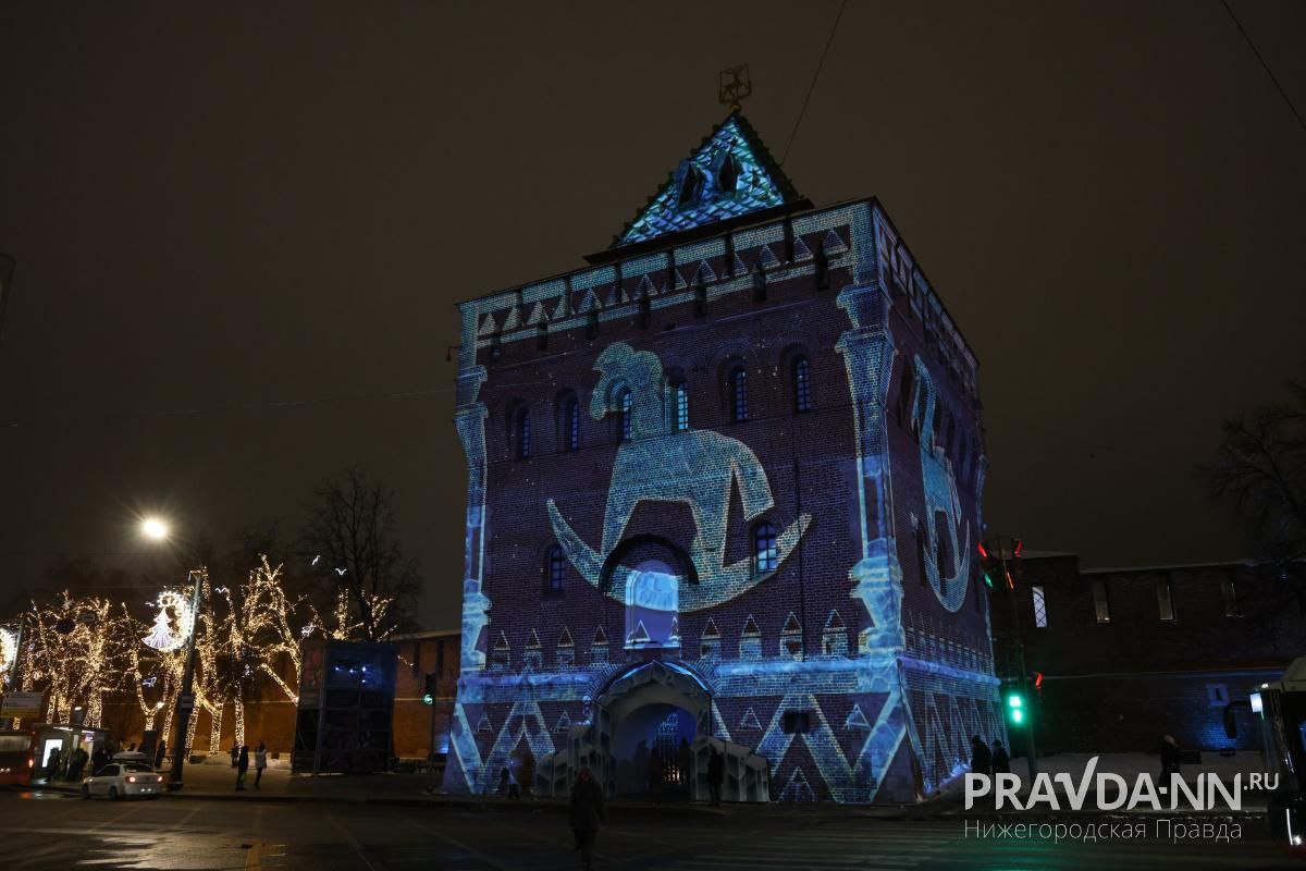 Новогоднее 3D-шоу запустили на Дмитриевской башне Нижегородского кремля.