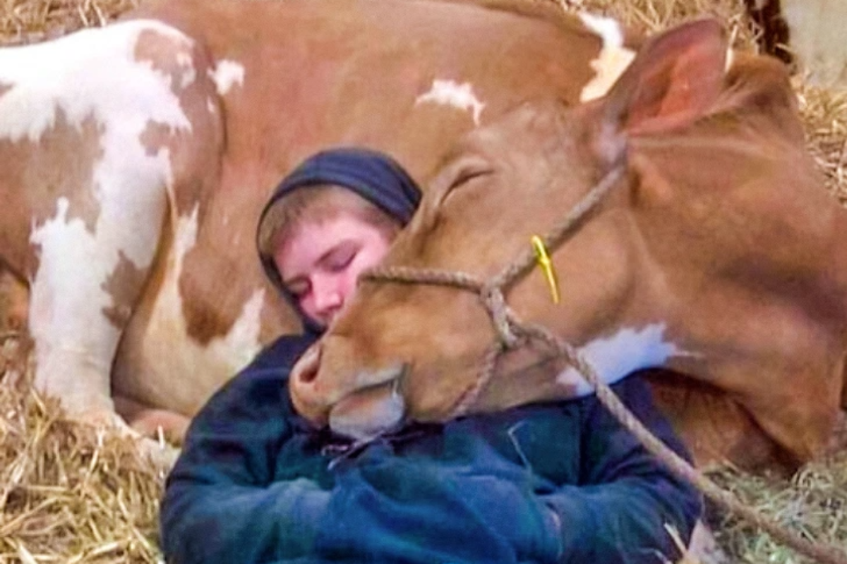 На одной из фотографий запечатлен мальчик и его корова. Это не просто животное для них, а верный друг, с которым связаны теплые воспоминания. На снимке видно, как юный фермер переживает с коровой трудные времена, когда та заболела. Он провел всю ночь в стойле, чтобы удостовериться, что с ней все в порядке.