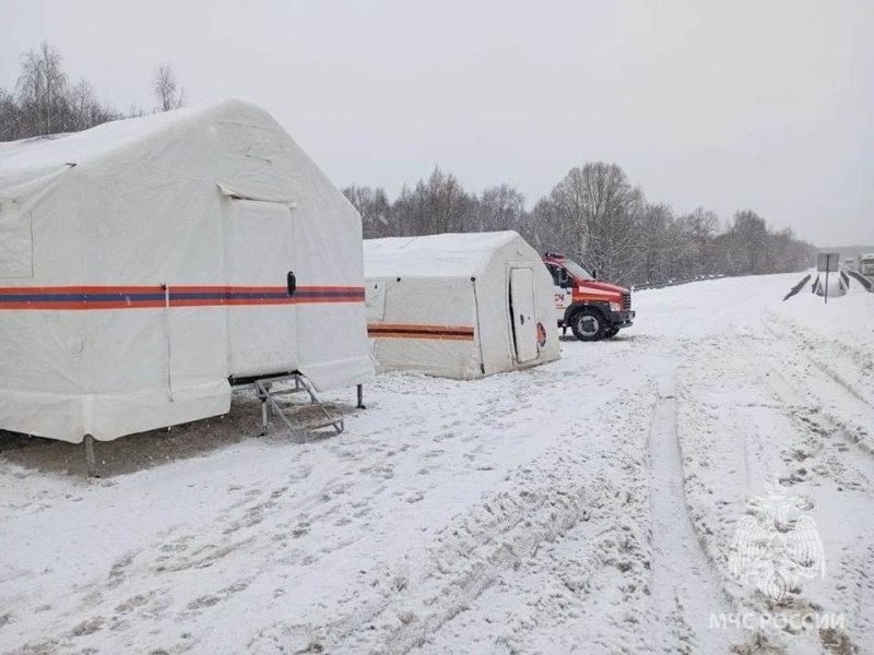 Из-за ухудшения погодных условий и возможного осложнения обстановки на дорогах сотрудники МЧС организовали мобильные городки жизнеобеспечения.