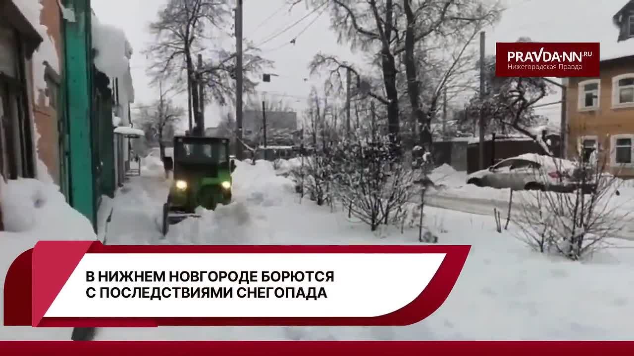 В Нижнем во всю борются со снегом. Смотрите, как маленький фронтальный погрузчик чистит тротуары в Канавине.