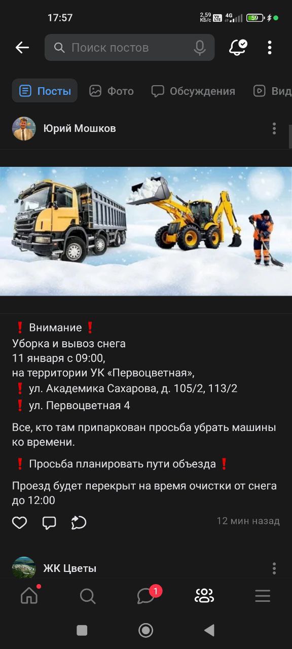 Хорошие новости. Жители улицы Первоцветная поделились радостью, коммунальщики их услышали и назначили время уборки придомовой территории.