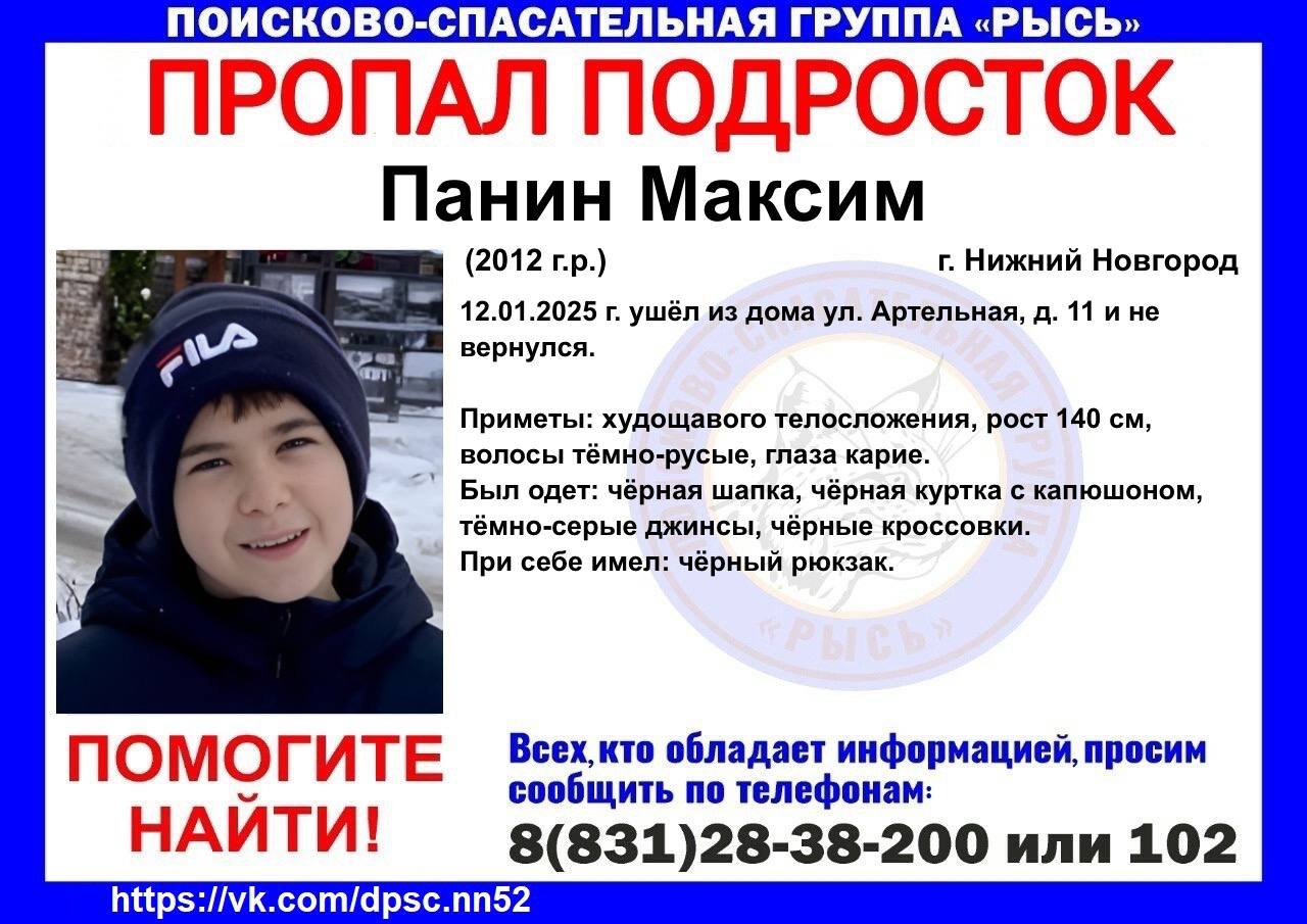 13-летний Максим Панин вчера ушёл из дома на улице Артельной и не вернулся.