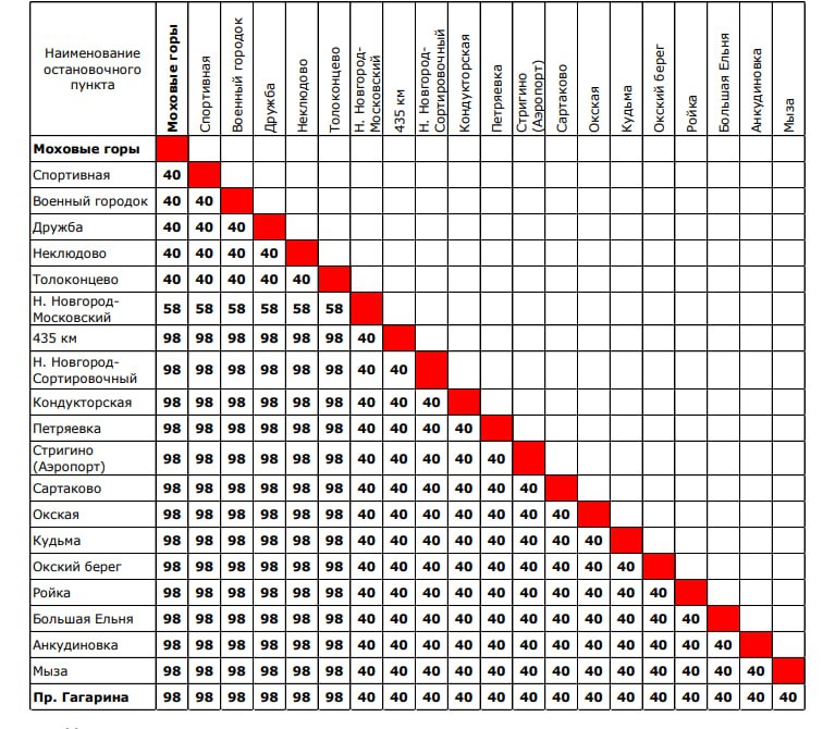 Есть несколько маршрутов исключений, где стоимость останется фиксированной: это маршруты Нижний Новгород-Московская – Варя – Дубравная и Нижний Новгород-Московская – Кустовая – Проспект Гагарина (40 рублей), а также маршрут Нижний Новгород-Московская – Моховые Горы (58 рублей).