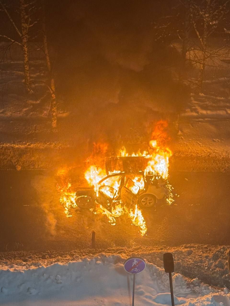 Несколько громких хлопков услышали местные около пяти утра. Предположительно, полыхало китайское авто Livan X6 Pro. "Это наша машина загорелась. Сегодня у дочери День рождения, он поехал искать цветы, чтобы сделать ей сюрприз, машина загорелась на...