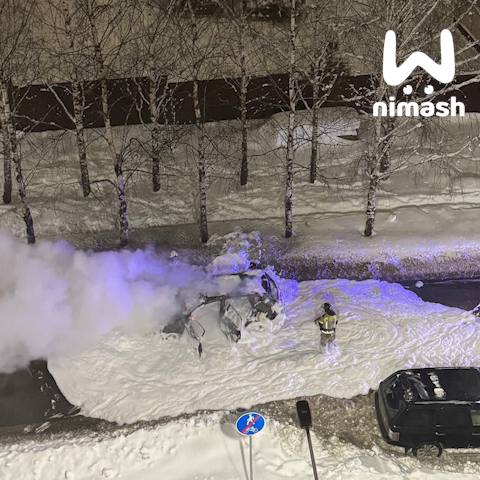 По словам местных жителей, около шести утра за окном раздались несколько взрывов. Оказалось, загорелась машина соседа.