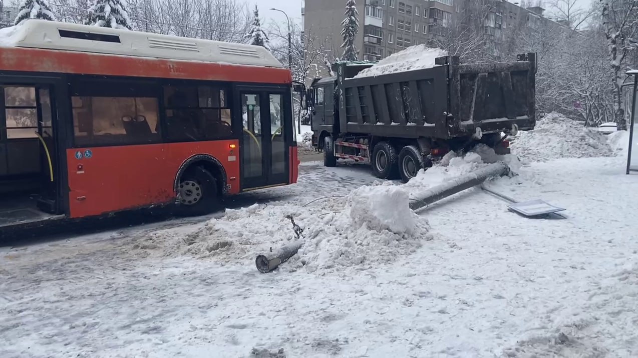 Как сообщили в ГАИ, грузовик наехал на столб освещения, двигаясь задним ходом. Опора упала на автобус и 72-летнюю пассажирку, выходящую из него. Пожилая женщина получила травмы, ее осмотрела бригада скорой помощи.