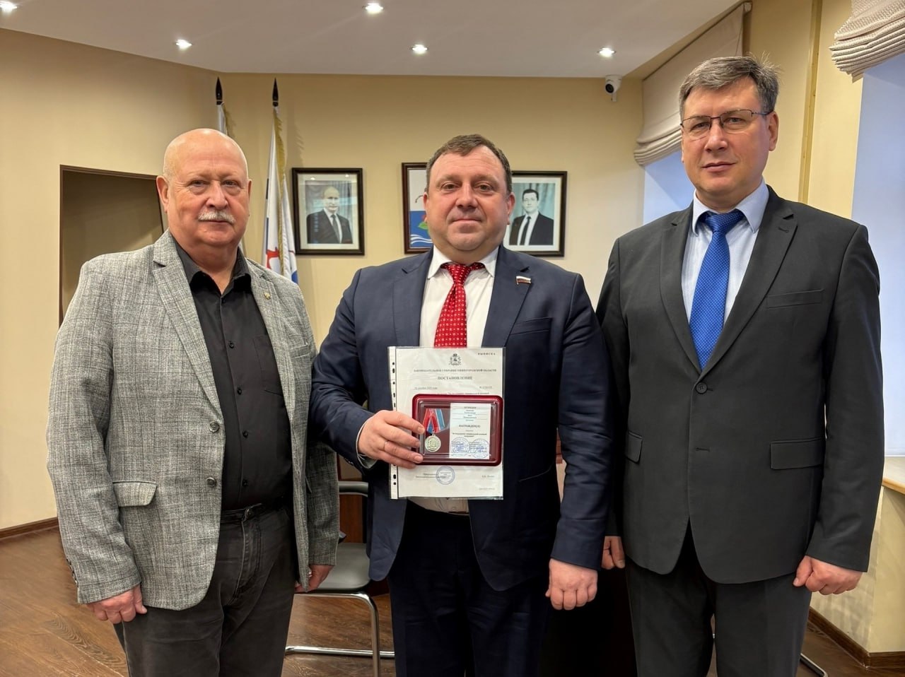 Медаль «За поддержку специальной военной операции» вручил депутату городской Думы Нижнего Новгорода Александру Кузнецову заместитель председателя комитета по социальным вопросам Законодательного Собрания Нижегородской области Александр Цопов, а вторую награду – командир одной из воинских частей.