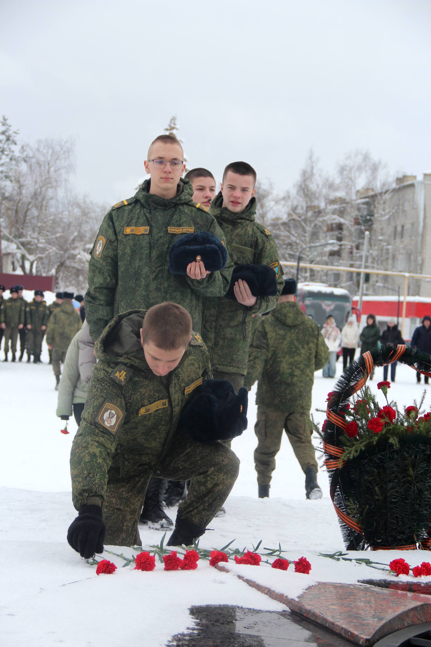 В город прибыли воспитанники Нижегородского кадетского корпуса, чтобы совершить традиционный переход, посвященный 25-летию учебного заведения. После лыжного марш-броска кадеты почтили память героев, возложив цветы к Мемориалу Славы.