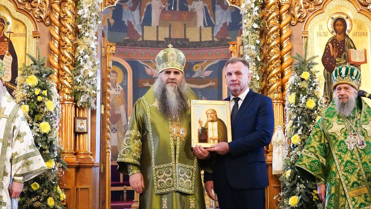 Митрополит Георгий отметил, что по благословению патриарха Московского и всея Руси Кирилла преподобный Серафим Саровский определен небесным покровителем Спецсвязи России. В память об этом событии глава Нижегородской митрополии вручил Ивану Гайчене икону преподобного.