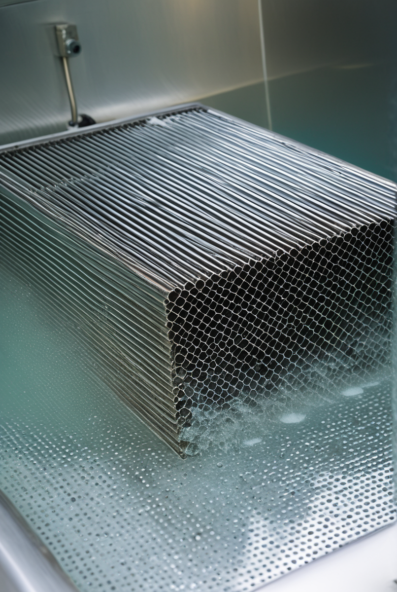 Процедура требует тщательной подготовки. Необходим монтаж радиатора в ультразвуковую ванну с заранее приготовленным раствором на основе моющего средства. Основные шаги включают: