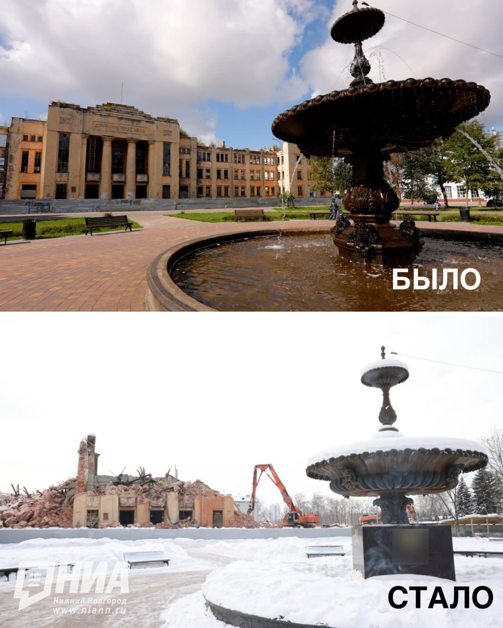 Его снос начался сегодня утром. На втором снимке — то, как здание на улице Октябрьской Революции выглядит прямо сейчас.