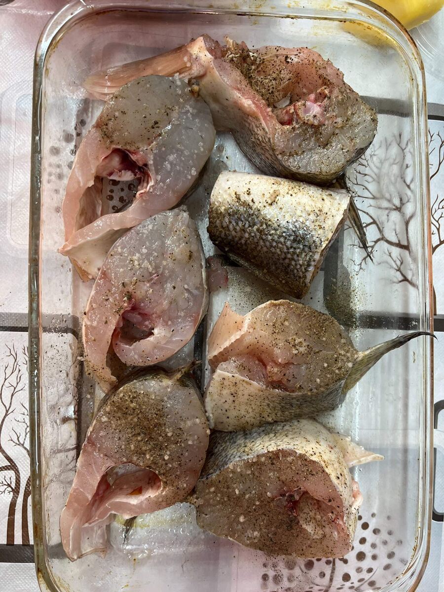 Например, первым делом решено было по рецепту из Интернета приготовить судака с лимоном и яблоками в сливках. Для этого рыбу посолили, поперчили и разместили на противне, смазанном растительным маслом. Каждому куску рыбы положили по половинке лимона — но лучше всего нарезать дольки потоньше.