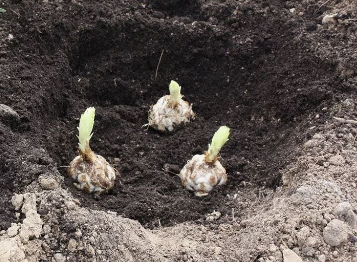 - Глубина посадки: определяется размером луковицы, как правило, составляет 2–3 высоты луковицы.