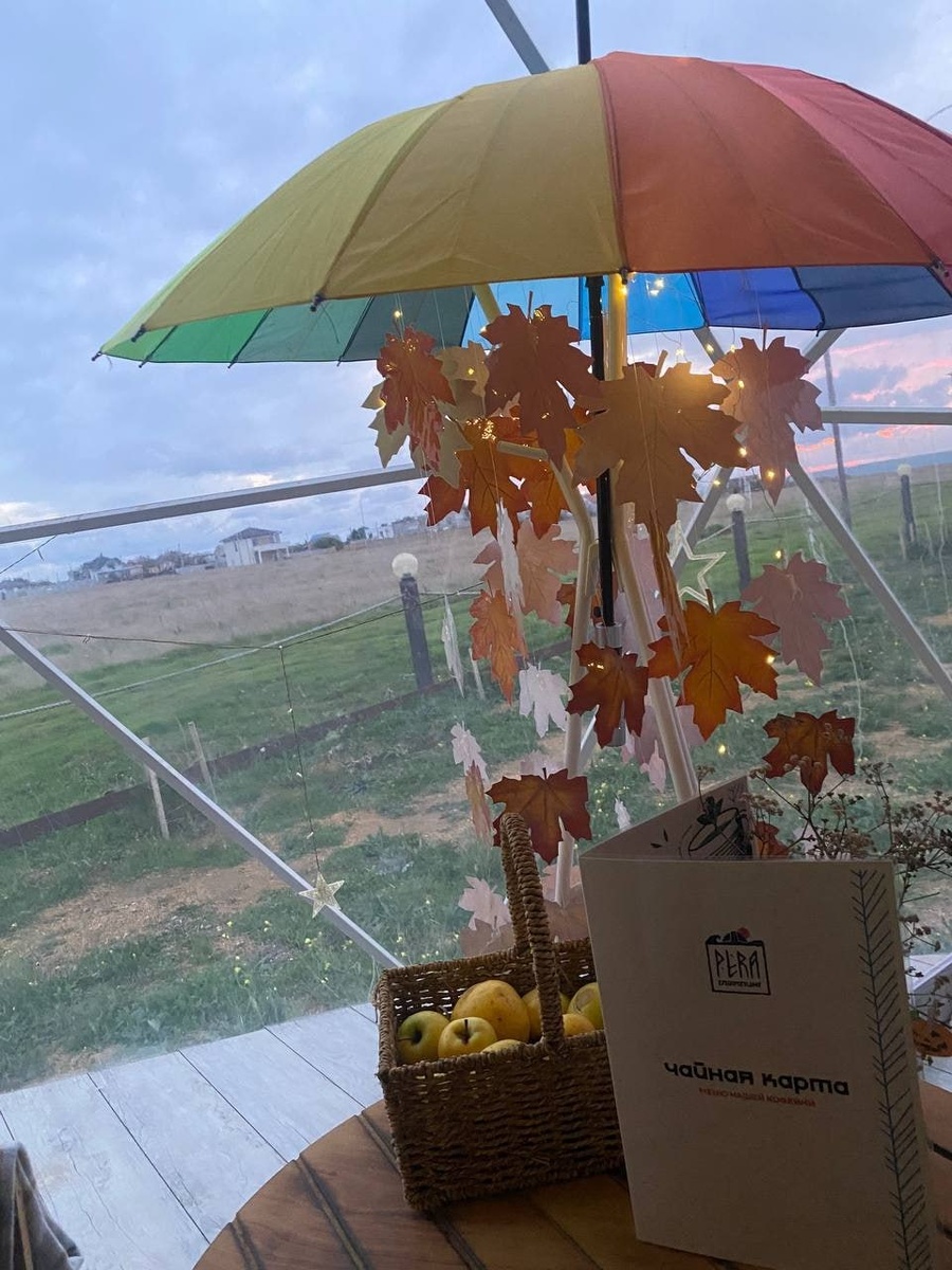 Всё это доступно прямо на территории глэмпинга. Вам не нужно никуда ехать — достаточно заранее сделать предзаказ на обед и ужин, и всё будет готово к вашему приходу.
