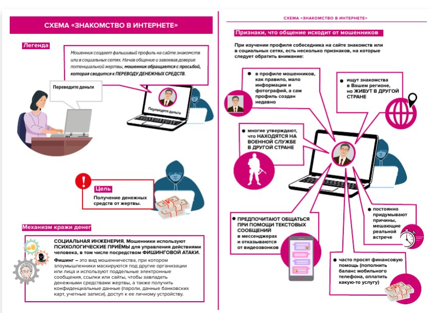 Финансовые мошенники используют разные схемы. О том, как распознать угрозу и как предотвратить преступление, наглядно показано на следующих карточках.