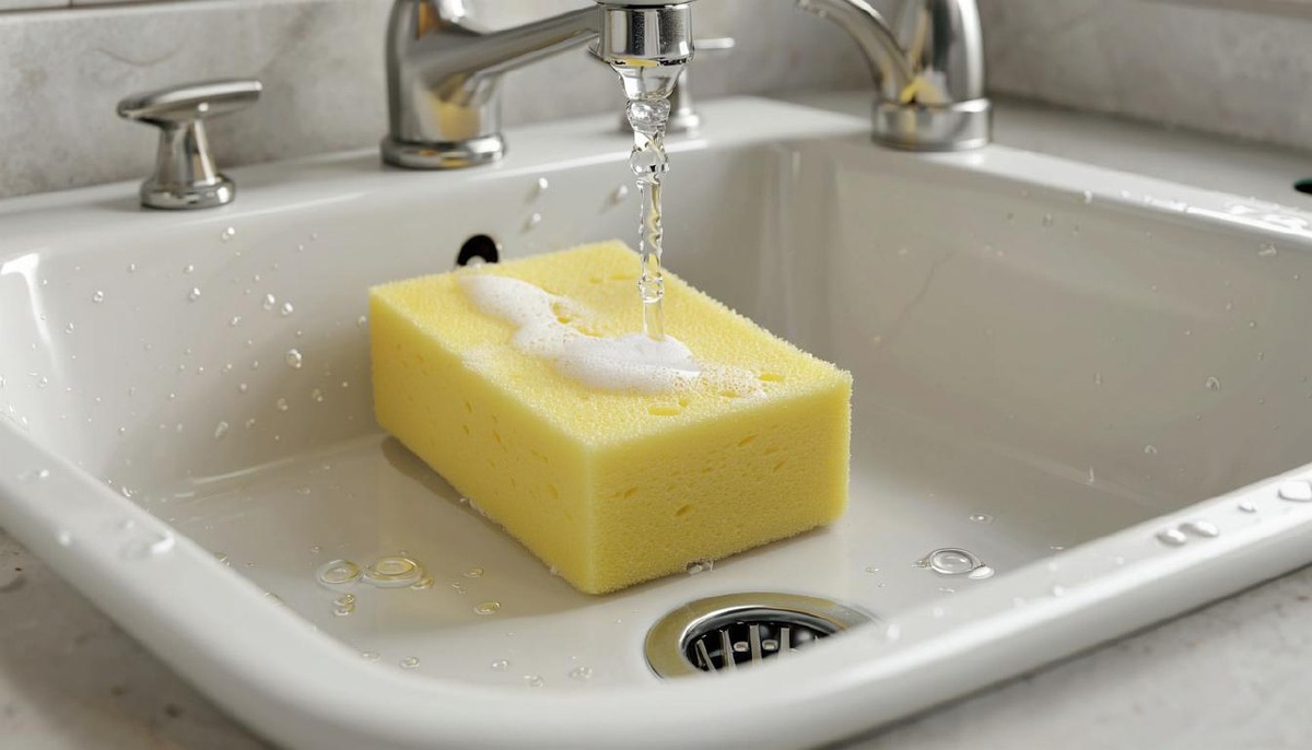 Губка для мытья посуды — это один из самых загрязнённых предметов на кухне, поскольку её пористая структура удерживает влагу и способствует размножению бактерий. Кипяток считается наиболее надёжным способом дезинфекции. При температуре 100 градусов по Цельсию, кишечная палочка погибает, но для более стойких микроорганизмов рекомендуется держать губку в кипятке не менее 15 минут.