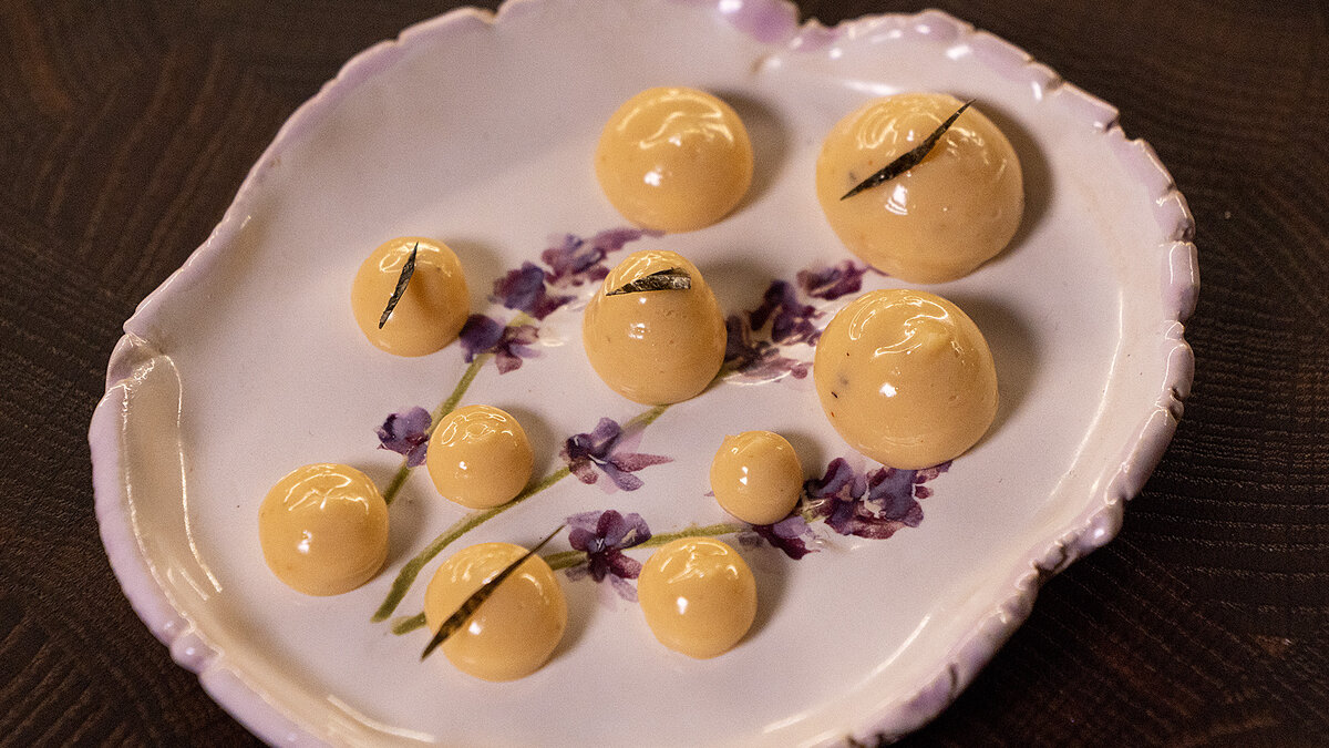 Ключ к мягкости и насыщенности — постепенное соединение жидких ингредиентов с маслом, чтобы масса держала форму и не распадалась. В конце добавляются мелко нарезанные водоросли нори, которые придают характерный ореховый оттенок и легкую солоноватость.
