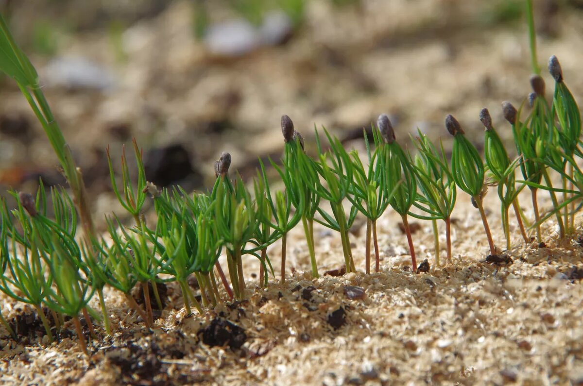Почва должна быть воздушной и умеренно влажной, бедной на органику, чтобы не провоцировать грибковые болезни. Смешивают верховой торф, крупный песок и небольшой слой хвойного опада. Перед посевом субстрат обеззараживают крутым кипятком или пропариванием. Семена размещают близко к поверхности и слегка присыпают песком, а емкость закрывают стеклом или пленкой для парникового эффекта.