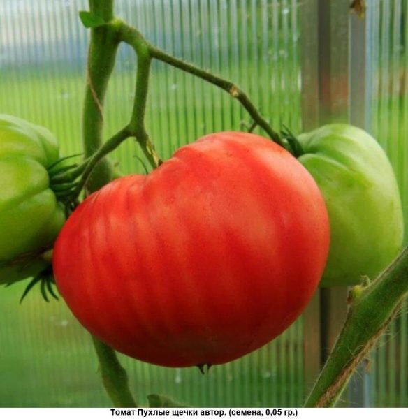 Толстые щечки относятся к среднеспелым индетерминантным томатам: куст достигает значительной высоты, требует формирования и подвязки, но при этом дает устойчивый урожай мясистых плодов массой 450–800 г. Плоды остаются плотными и сочетают сладость с легкой кислинкой, что делает их пригодными как для свежих салатов, так и для густых соусов и кетчупов.