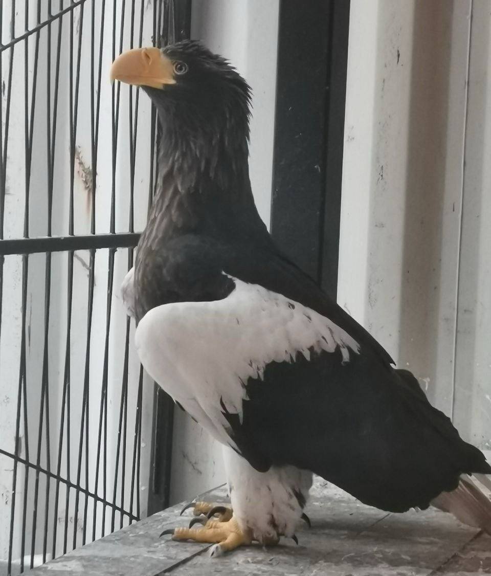 Редкому белоплечему орлану примерно три года, он был с раненым крылом и сильно истощён. Ветеринары подлечили его и отправили на карантин. После выздоровления специалисты решат, куда этот красавчик отправится — обратно домой или в зоопарк.