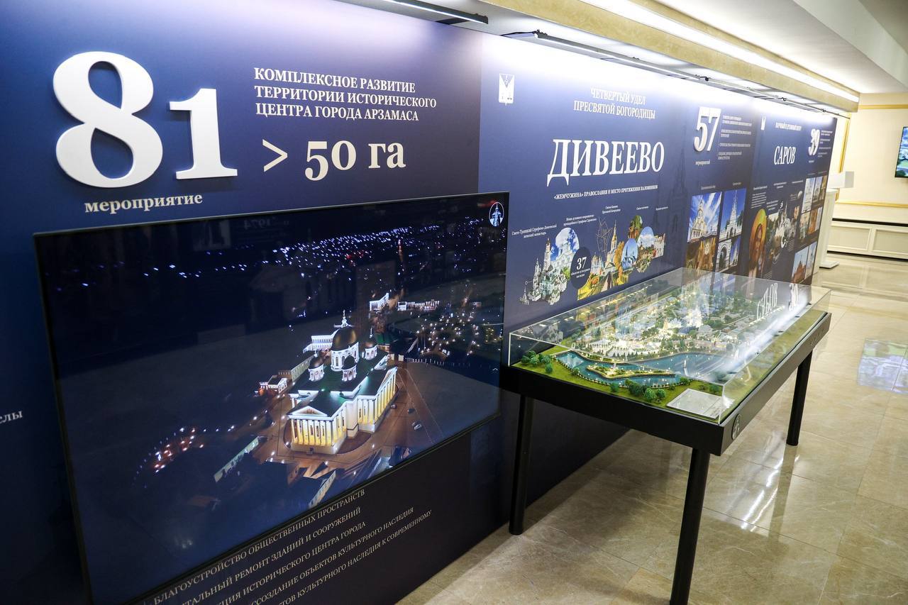 Отдельный раздел рассказывает о духовных центрах региона и развитии кластера «Арзамас – Дивеево – Саров», в рамках которого продолжается восстановление храмов, монастырей и исторических территорий.