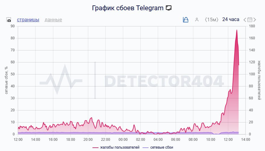 Пользователи Telegram жалуются на сбои в работе сервиса в России, следует из данных портала Downdetector.