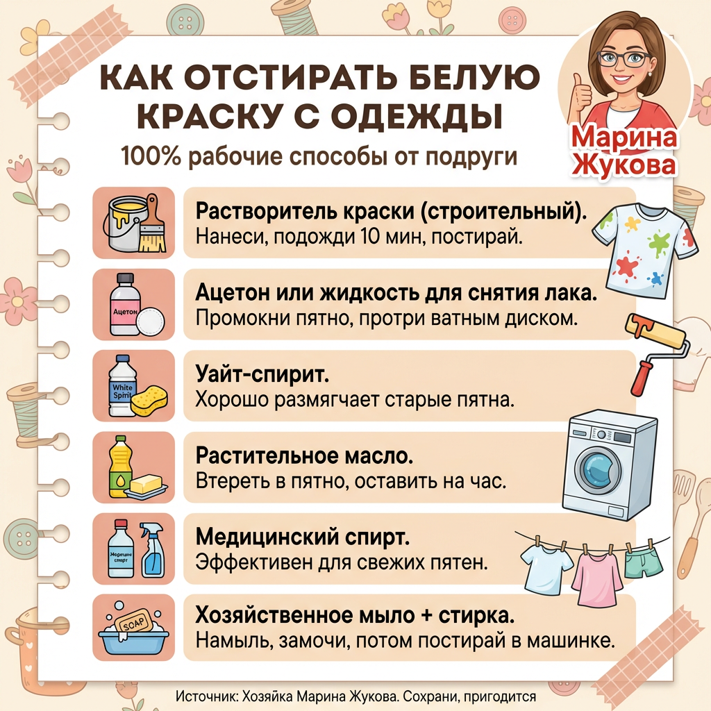 - Спирт или ацетон: Эти вещества отлично справляются с масляной краской. Нанесите немного спирта на ватный диск и аккуратно обработайте пятно, прежде чем стирать вещь в машине.