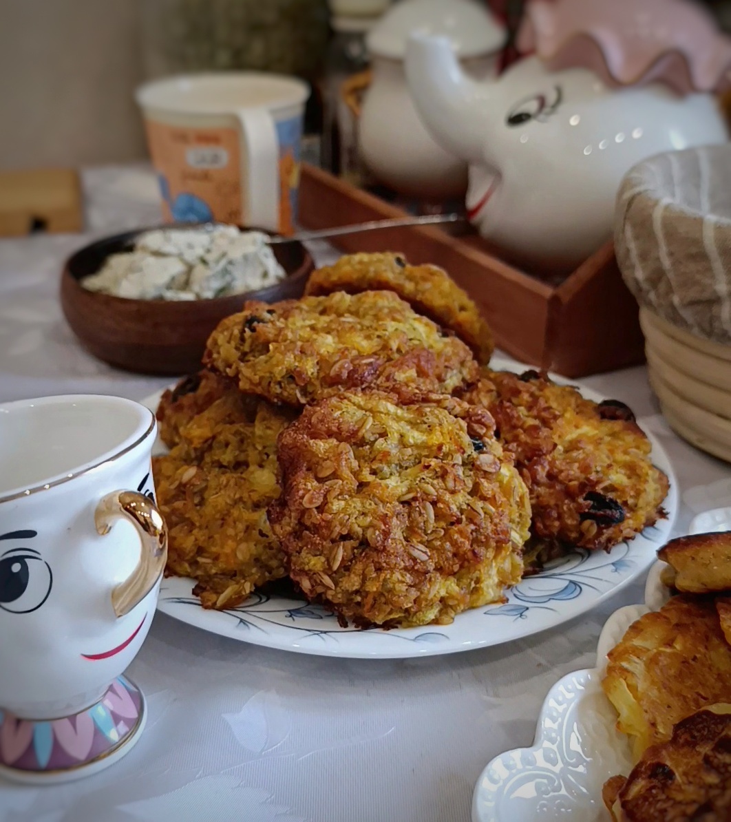 Однако в этом угощении не обойтись без овсяных хлопьев, которые надежно держат форму печенья, не позволяя расплавиться овощной тайне на виду.