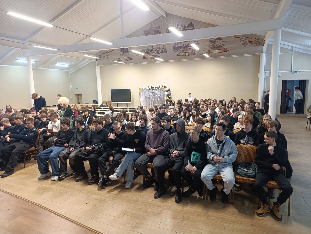 Спикер подробно разобрал правила поведения в зоне повышенной опасности. Студенты узнали о том, почему пешеходный переход единственно возможный маршрут, и услышали о реальных трагедиях, вызванных беспечностью.