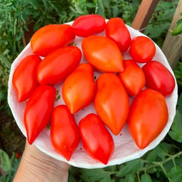 Плоды Гречанки отличаются привлекательной яйцевидной формой и насыщенным малиновым цветом. Они идеально подходят как для консервирования, так и для употребления в свежем виде благодаря сбалансированному вкусу — сочетанию сладости и легкой кислинки. Их высокое содержание мякоти и малое количество семян делает их отличными для создания соусов и домашних консерваций.